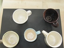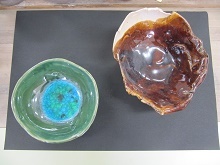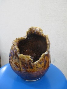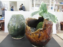 器の中にガラスを入れて焼いたり、独特の形でまねできない個性的な作品もあります。